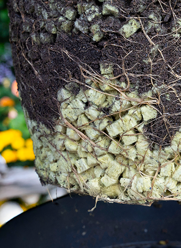 VÆKSTCUBES bidrager samtidig med adgang til ilt for plantens rødder, hvilket understøtter rodudviklingen og giver en sundere og mere robust plantevækst.